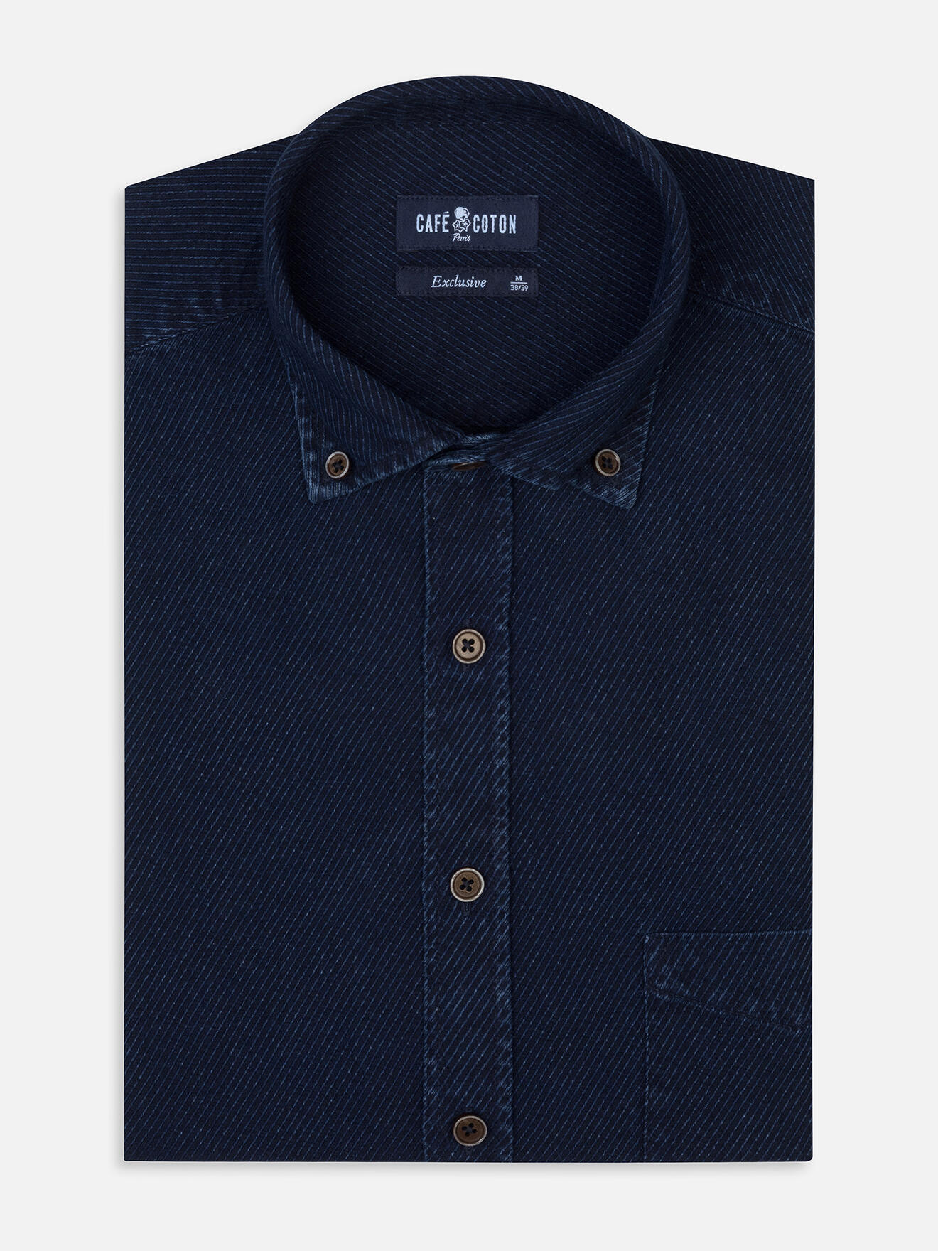 CAFÉ COTON erneuert die Denim-Welt mit einem innovativen Stück von starkem Charakter. Gefertigt aus einem 'Blue-Black'-Twill-Gewebe, zeigt diese Kreation mit markanter Struktur eine einzigartige Raffinesse. Ein Schlüsselmodell der Kollektion, das Ihren Outfits Originalität verleiht.