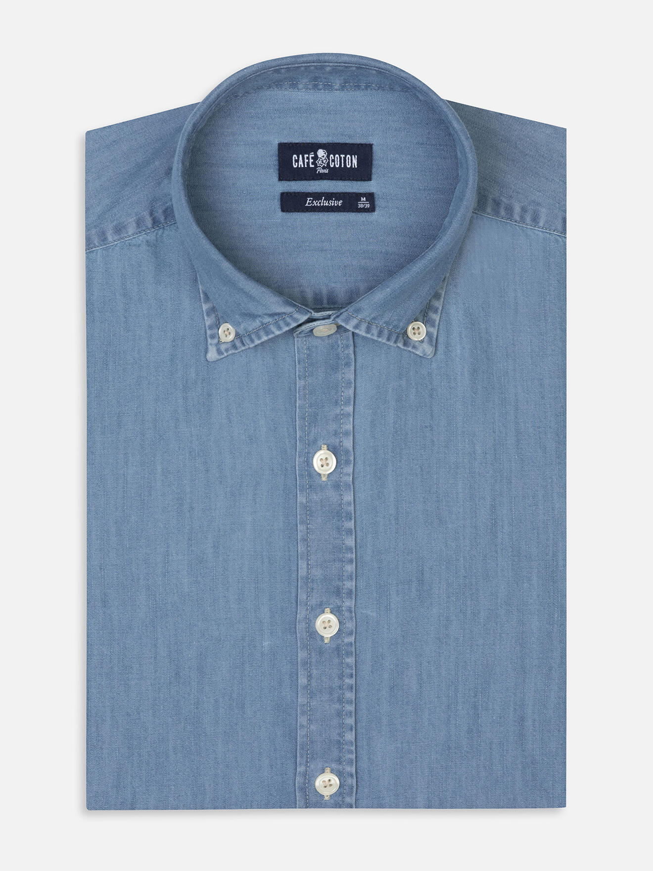 Tailiertes Hemd Haden aus Denim - Button-Down-Kragen