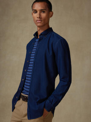 Tailiertes Hemd Hawke indigo - Button-Down-Kragen