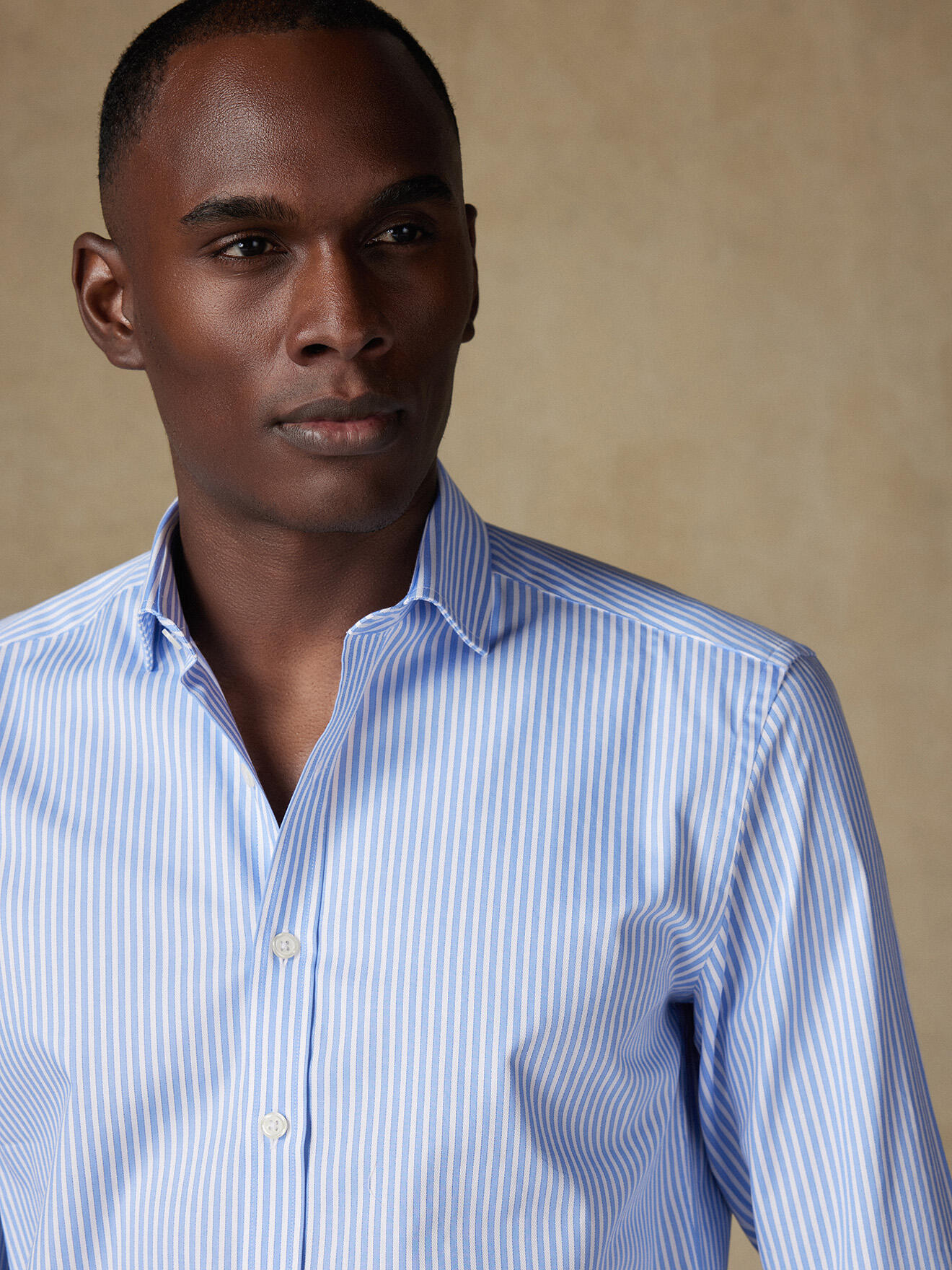Sophistiquée, cette chemise à rayures s’érige en pièce iconique et ouvre de nouvelles perspectives. Épurée, elle est sublimée par une teinte ciel rêveuse et un twill au relief subtil. La pièce indispensable pour s'évader cette saison…
