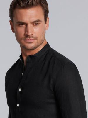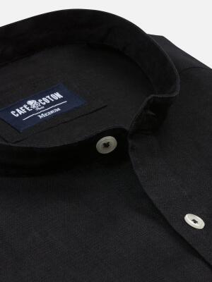 Black linen shirt - Mandarin Collar