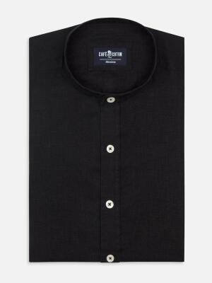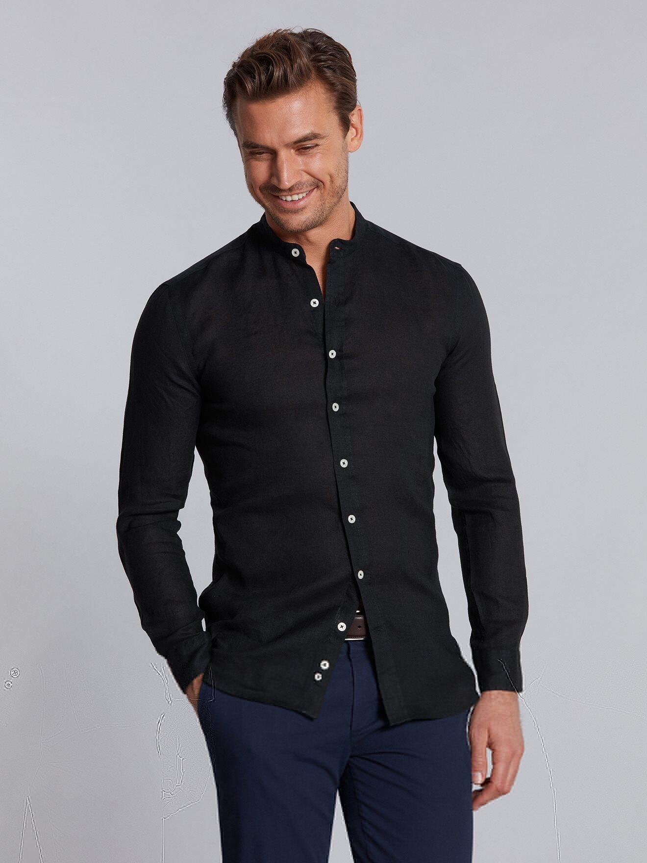 Urban and trendy, this black linen shirt will give you a feeling of unsuspected freedom. Enhanced by a contemporary Mao pass, it will be the perfect ally of your sweet summer days ...