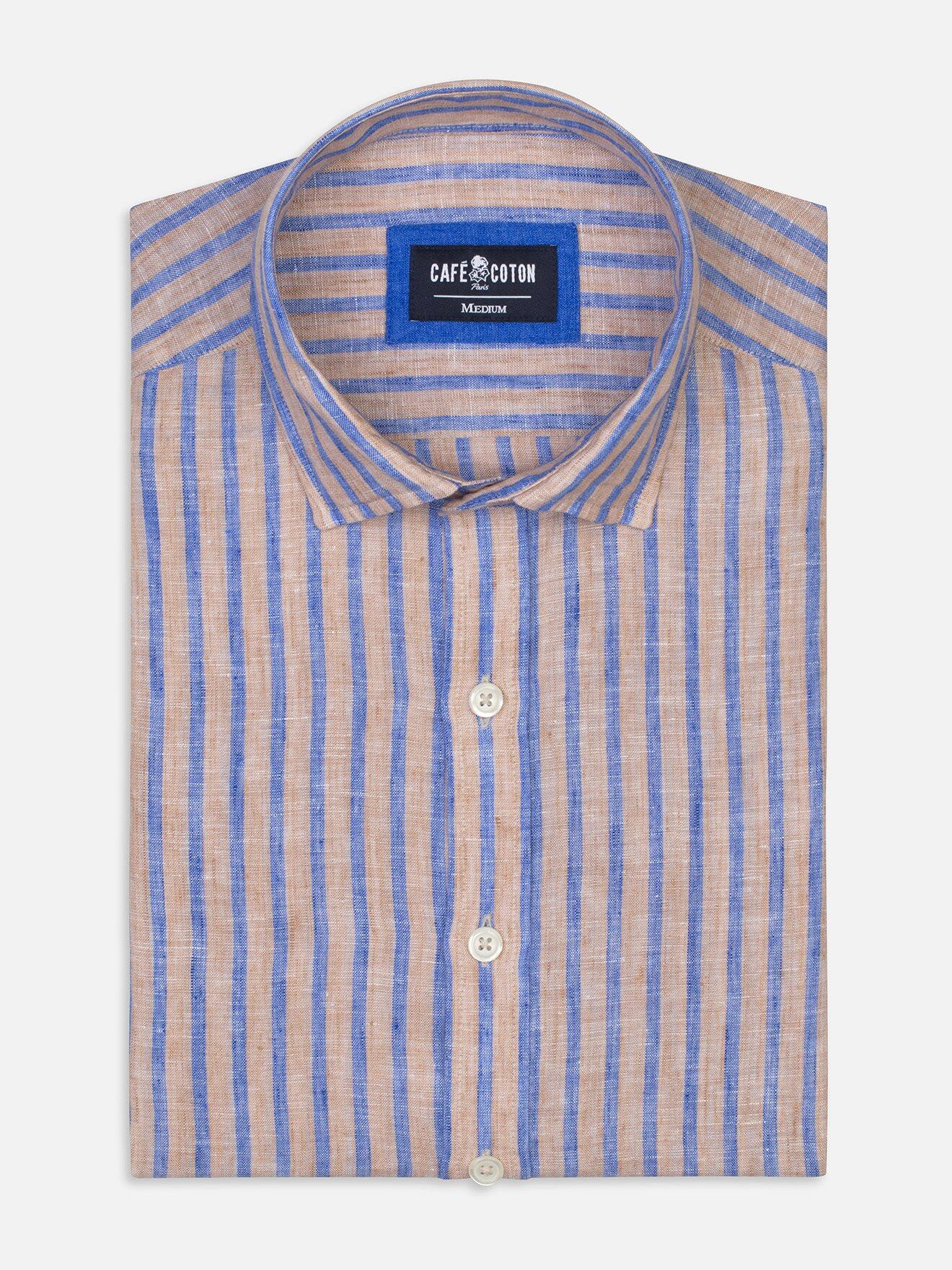 Blue stripes beige linen shirt