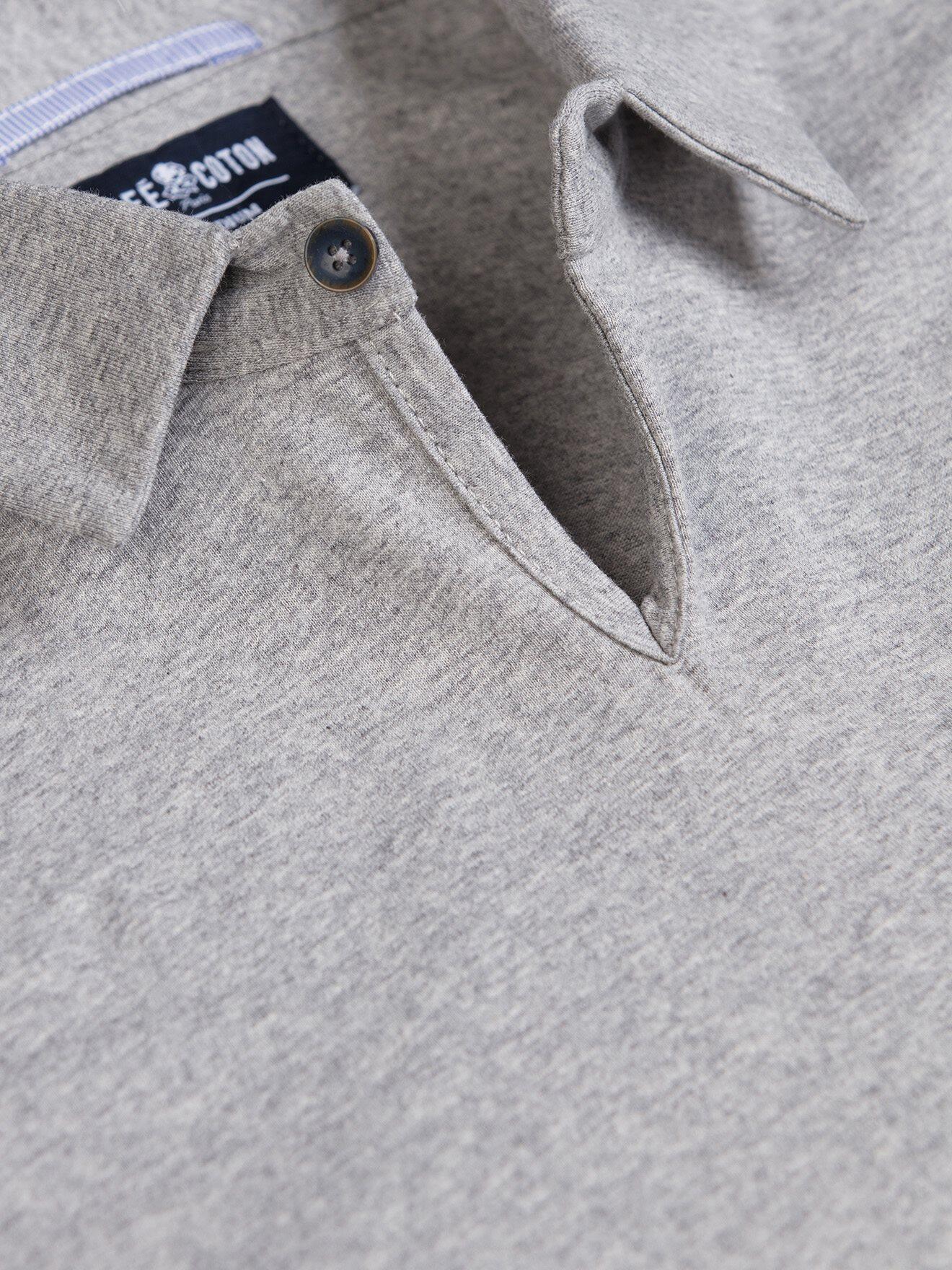 CAFÉ COTON innovates this summer with a long-sleeved polo shirt with a unique shark collar. Made from mercerized cotton jersey of a rare finesse, it reveals a sober and contemporary look. Enhanced by a timeless vintage grey hue, this is the must-have piece to get through the summer season between elegance and lightness