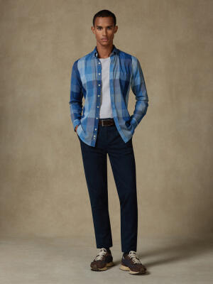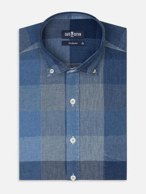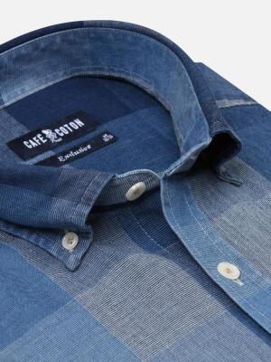 This indigo shirt with increasingly sophisticated details reinvents the codes of contemporary elegance. Enhanced by a unique handwoven texture and an iconic tartan pattern, it reveals an inimitable character. The essential piece to stand out boldly this season.