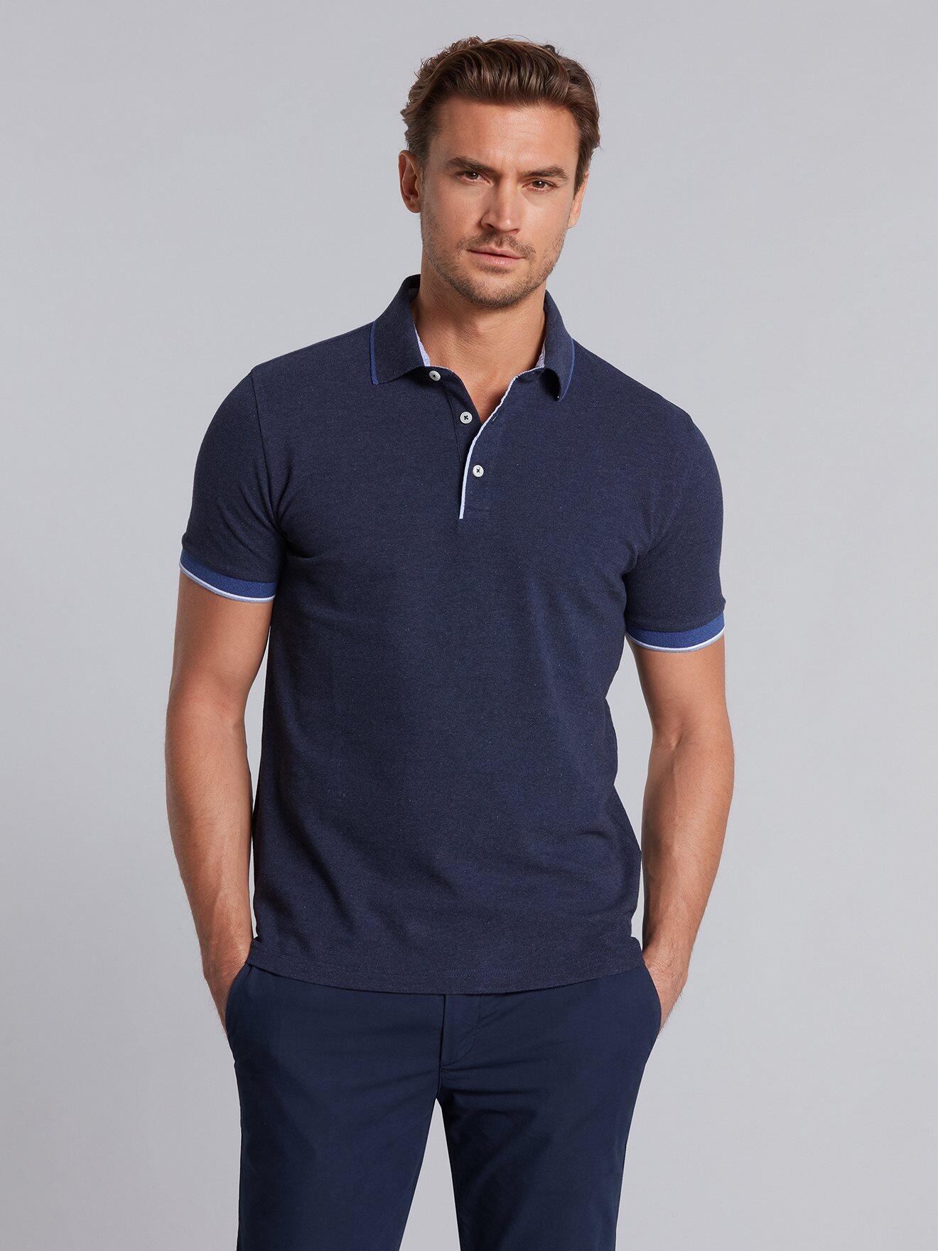 A breath of fresh air livens up the collection of polos this summer! Highlighted by a unique contrasting collar with a resolutely contemporary look, this indigo polo with an inimitable character twists your outfits with a singular originality.