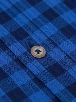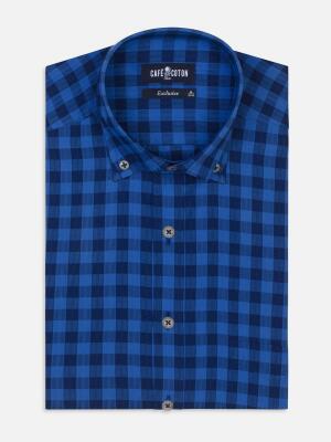 Navy checks popelin shirt - Button down collar