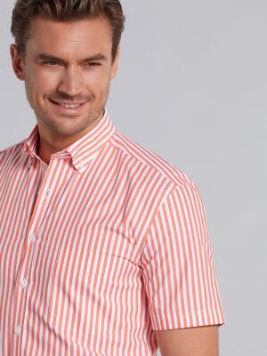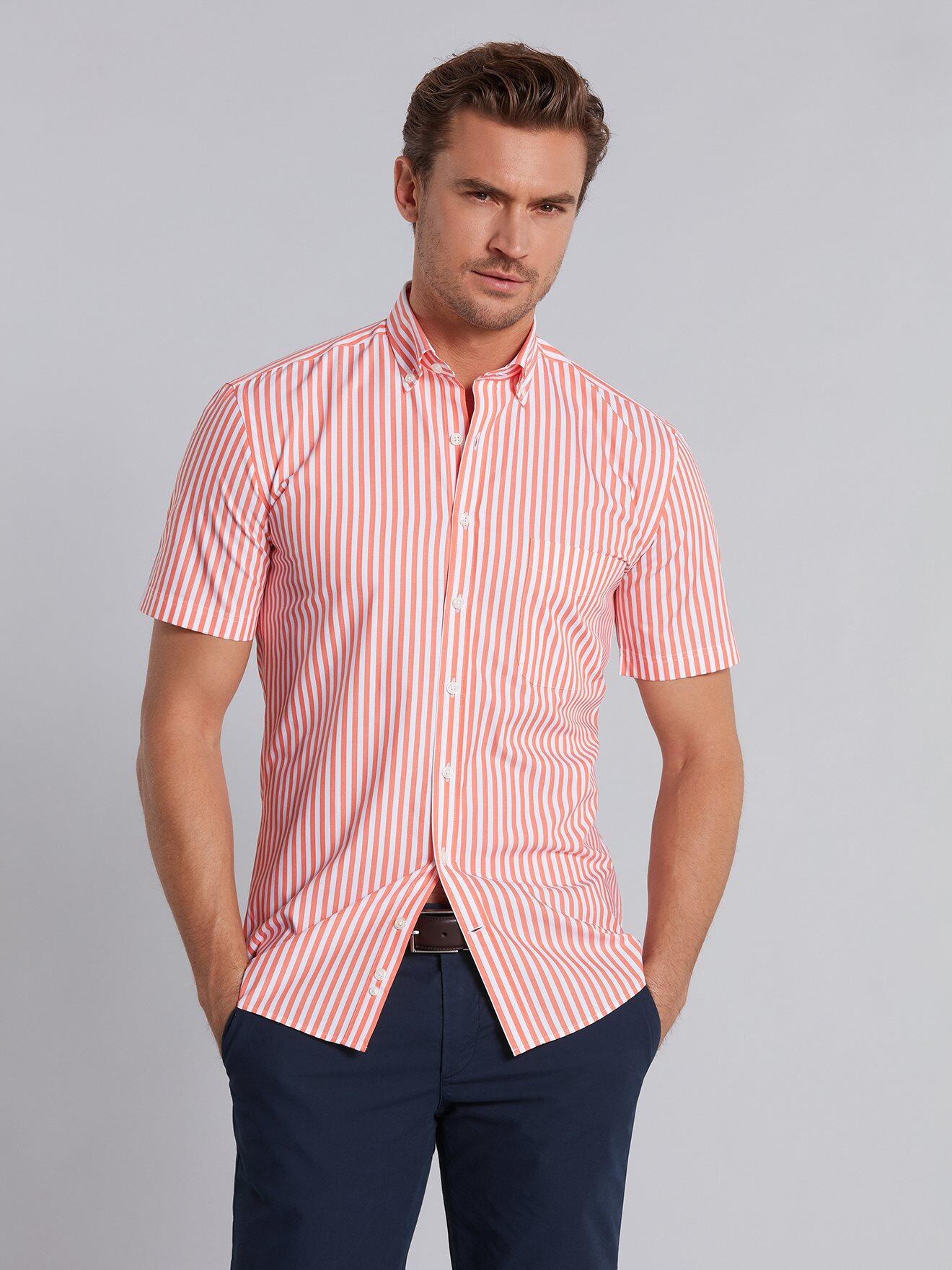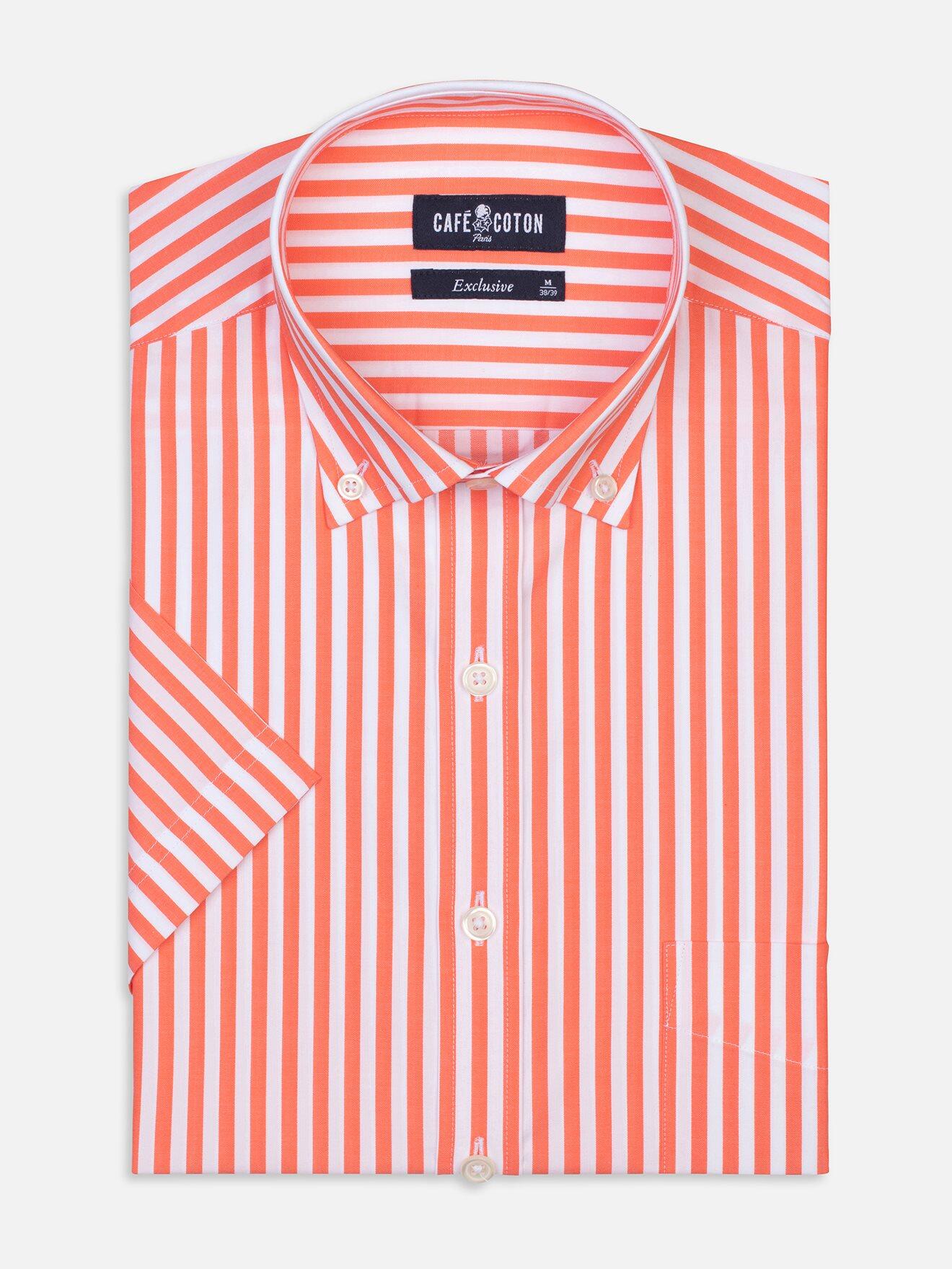 Mixing set of materials and character, this striped shirt reinvents this summer with softness and refinement. Realized from a chevron weaving affirmed, it highlights a palette of acidic colors with detonating freshness.