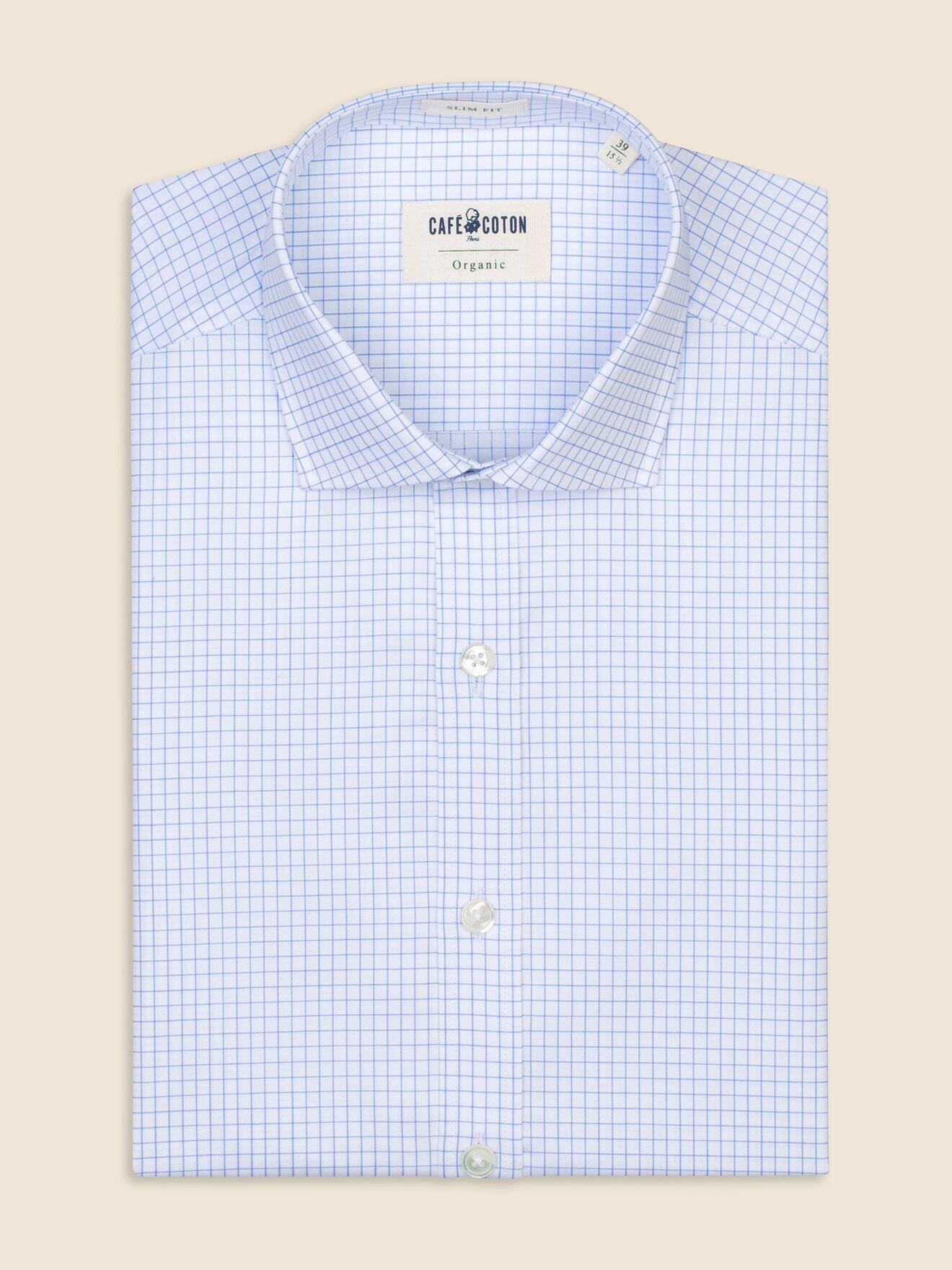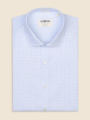Cette chemise en coton bio labellisé « GOTS » revendique une allure affirmée et un esprit authentique. Son tissage en twill lui confère douceur et relief. Réalisée dans un carreau-fenêtre ciselé ciel, elle structure votre silhouette avec sophistication et modernité.
