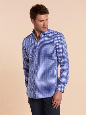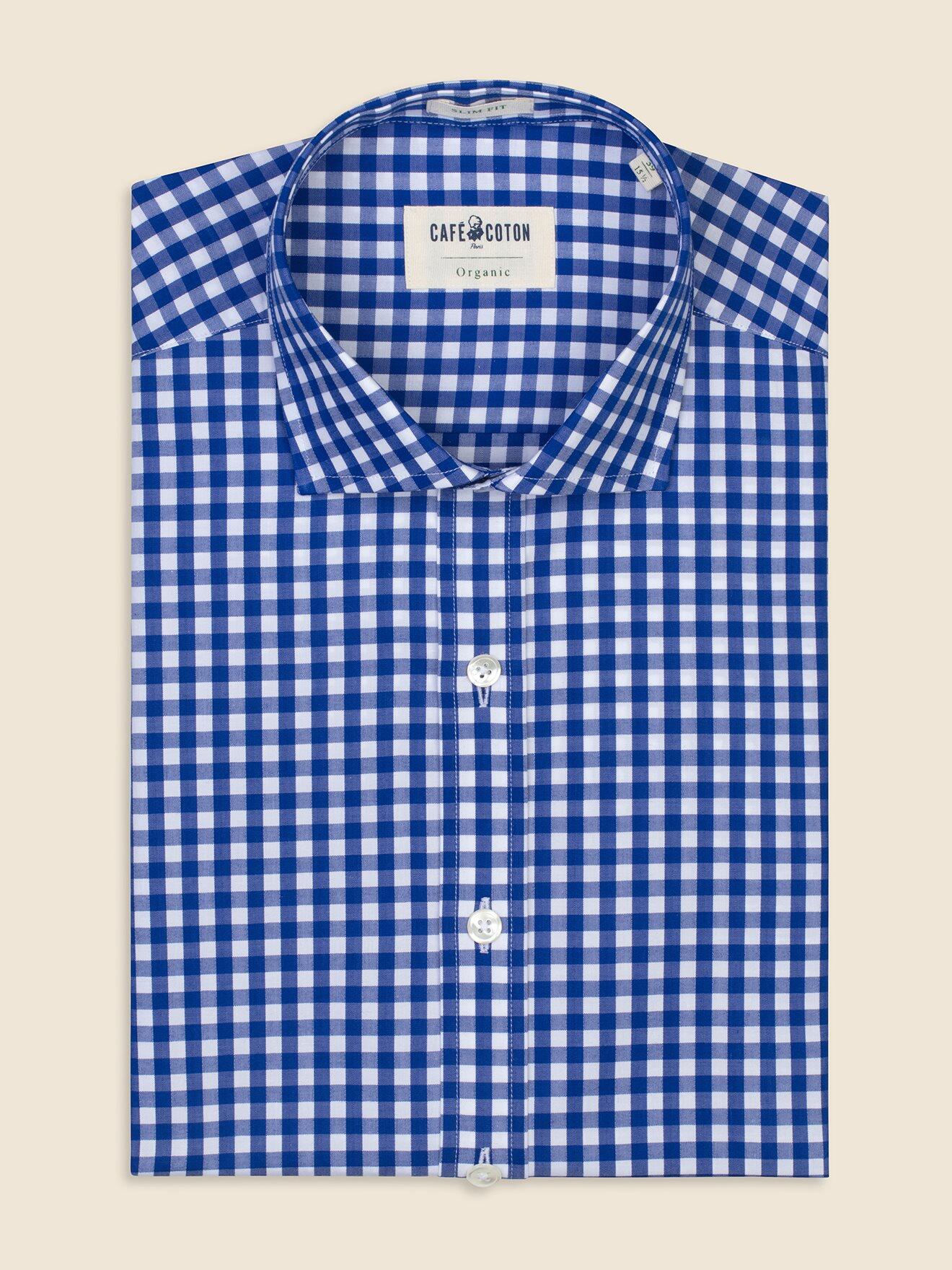Chemise bio cintrée Colin à carreaux marine