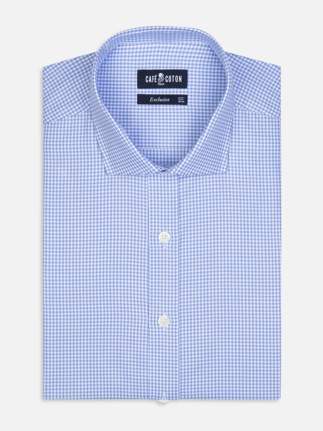 Épurée et chaleureuse cette chemise signe vos tenues avec une note de fantaisie rafraîchissante. Son tissage à motif vichy emblématique, réalisé dans un oxford sophistiqué, lui confère une qualité irréprochable et un toucher singulier. Sa teinte azur révèle une allure classique inimitable.