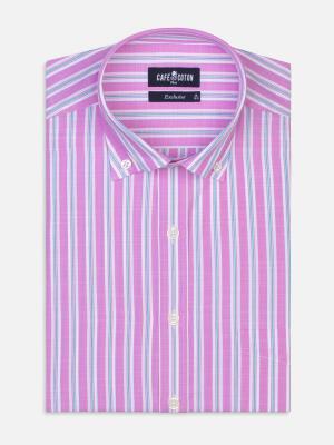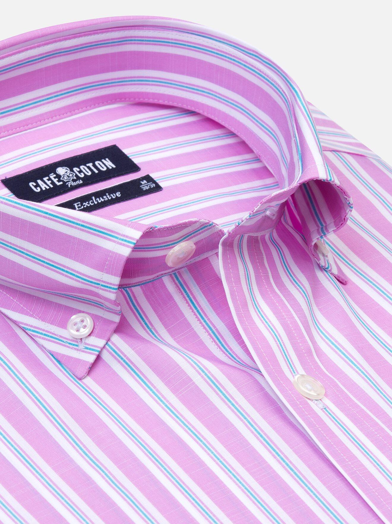 Enjouée, colorée et inspirée la collection Exclusive aime explorer de nouveaux territoires. Cette chemise à rayures multicolores, au tissage compact, met en lumière une palette de coloris intenses et acidulés. Son éclat singulier libère une élégance chale