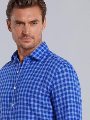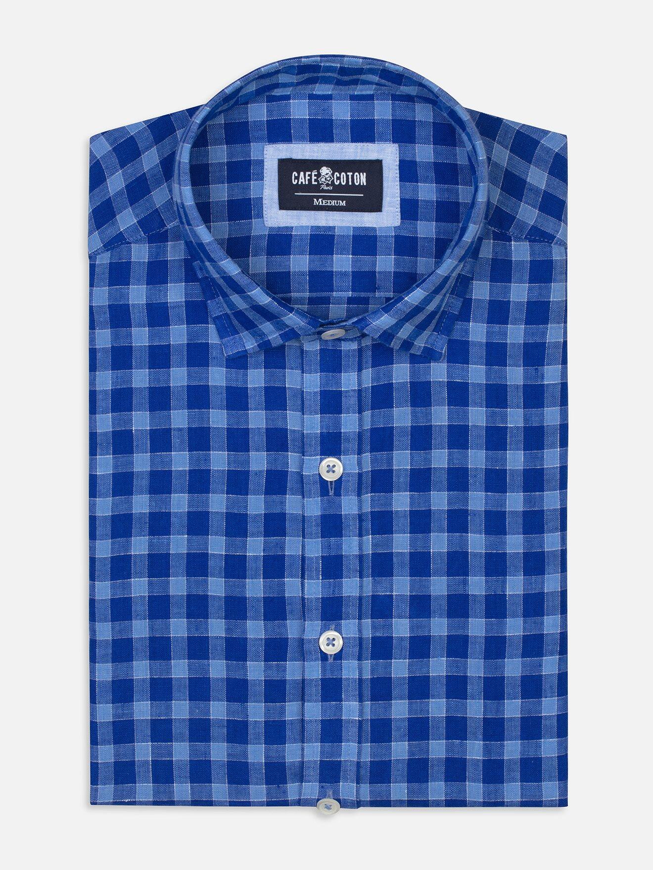 Chemise Jack en lin à carreaux bleus