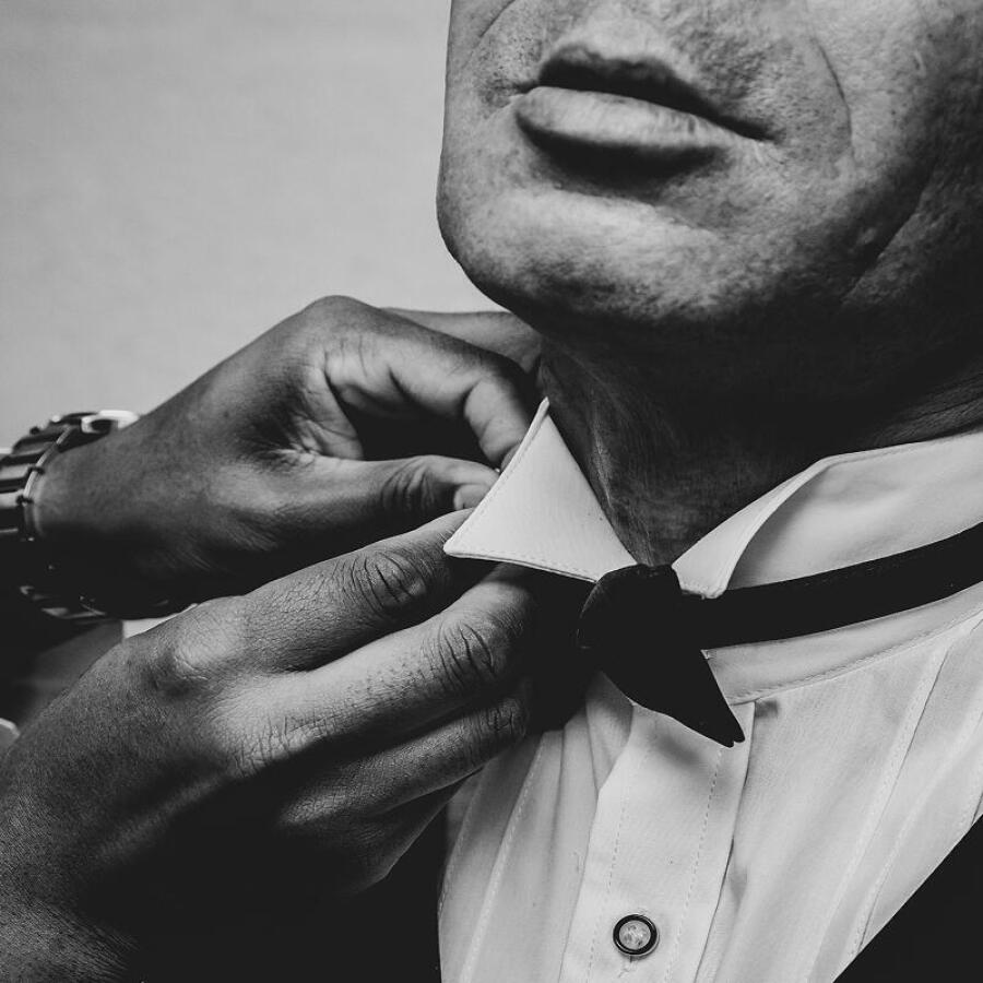 - Black tie : nœud papillon noir, chemise luxe à col cassé pour une allure parfaite.