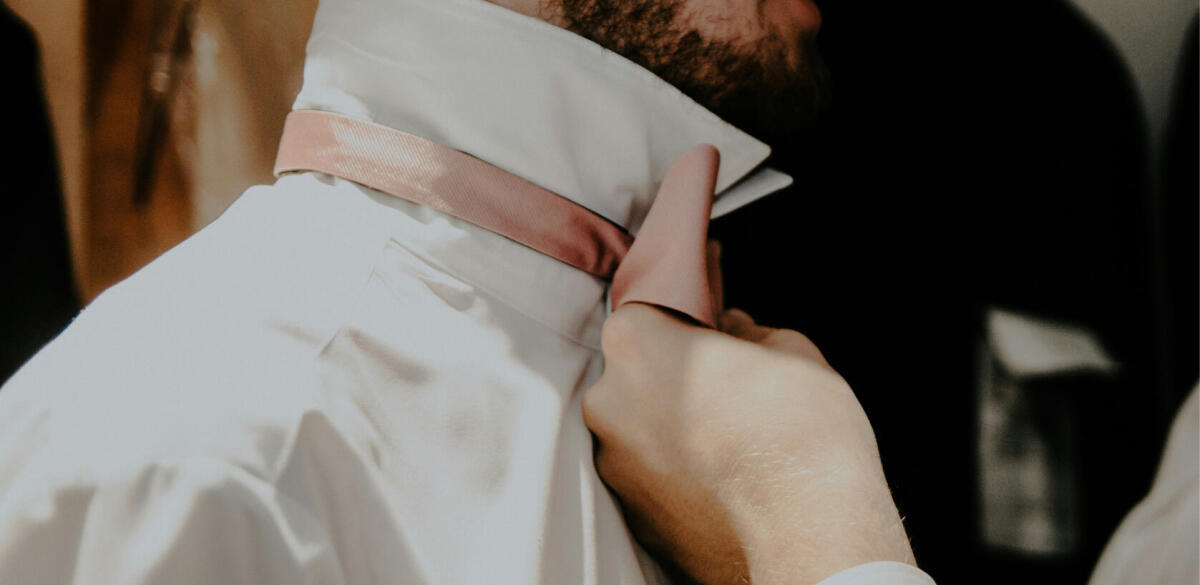 Un nœud bien ajusté se positionne confortablement sans serrer le cou, tout en restant bien en place durant toute la soirée. Le petit espace entre le col et le nœud garantit à la fois élégance et aisance.