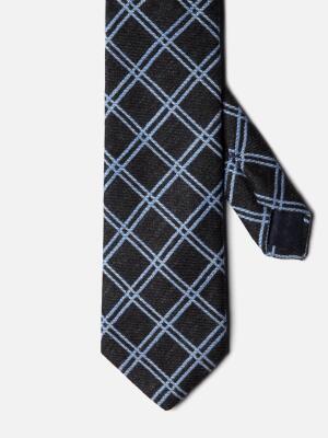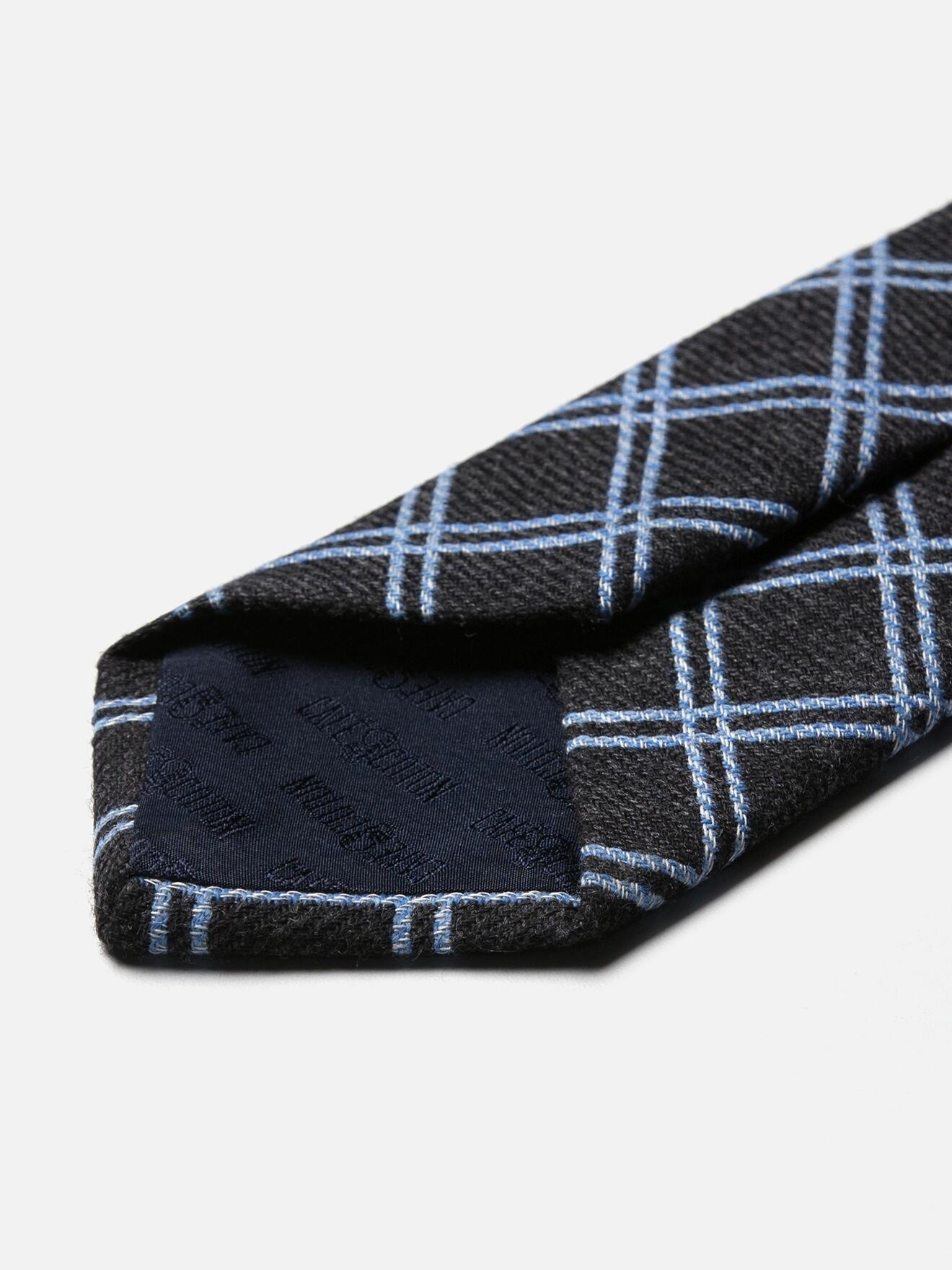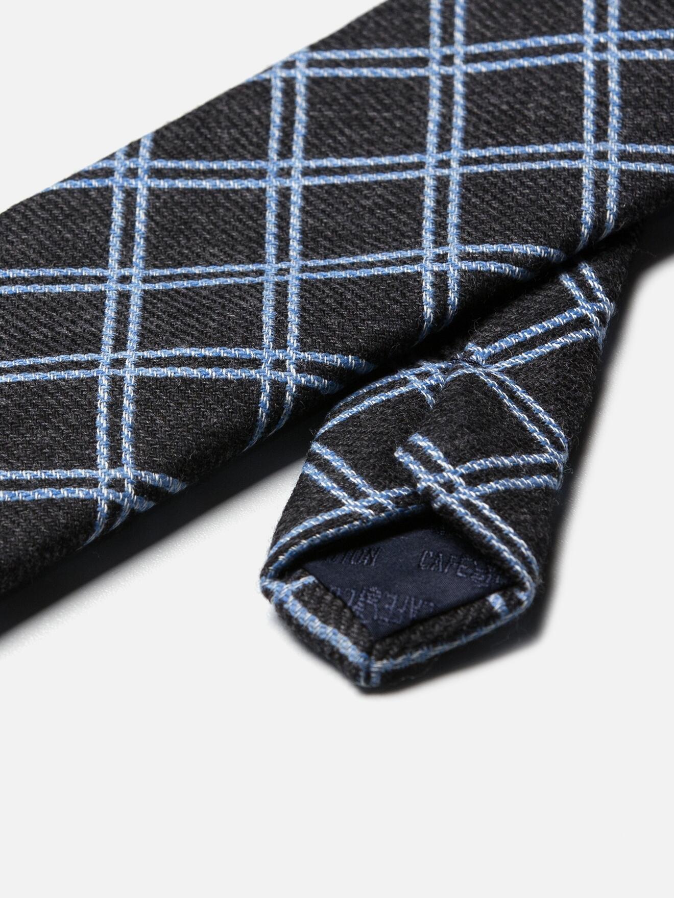 Cravate en laine et soie grise à carreaux ciel Cravates