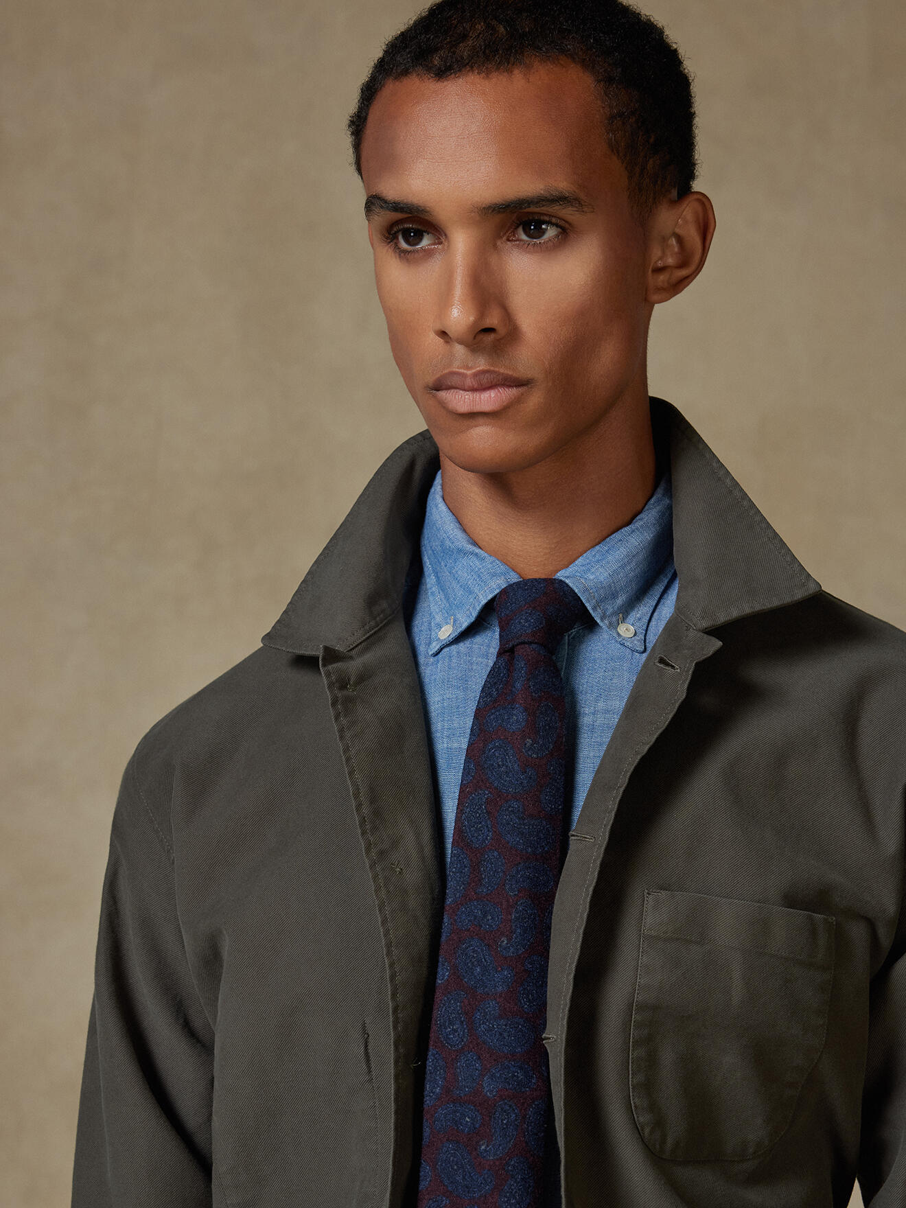À mi-chemin entre la veste et la chemise, cette surchemise pleine de caractère se joue des codes et des volumes pour vous offrir une variété de styles incomparable. Elle met en lumière un tissu en piqué de coton à la teinte kaki profonde et au relief hypnotique. La pièce indispensable de la collection à adopter au gré des saisons…