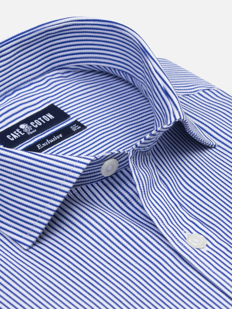 CAFÉ COTON heeft dit iconische overhemd opnieuw geïnterpreteerd, dit seizoen met een weving met een krachtig, assertief karakter. Het hypnotiserende streeppatroon voegt een vleugje originaliteit toe aan al je outfits.